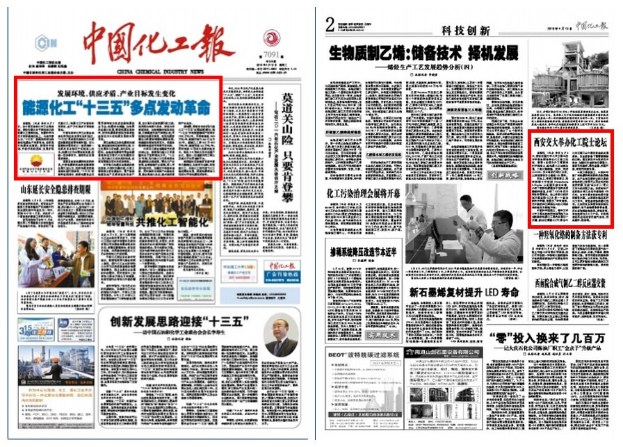 4月13日中国化工报刊登了“西安交大举办化工院士论坛”的消息: