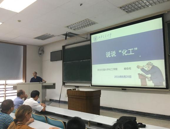 杨伯伦教授以“说说化工”为题,通过大量的图片资料,为大家详细介绍了化工专业的发展历史、主干课程、发展方向、相关的研究进展等,在展现化工专业魅力的同时让大家充分了解到学了化工是大有作为的。他幽默而又深入浅出的介绍博得了阵阵掌声。