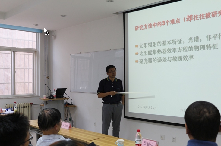 何雅玲院士、中航工业西安航空发动机(集团)有限公司吴建中教授级高工、天津大学赵力教授、国家太阳能光热产业技术创新战略联盟常务副理事长王志峰研究员分别作了特邀报告。他们报告的主题分别是太阳能热发电技术及其吸热器、蓄热器的优化研究,碟式太阳能热发电技术,光热高效利用及热力循环研究,以及我国太阳能热发电技术中的难点。