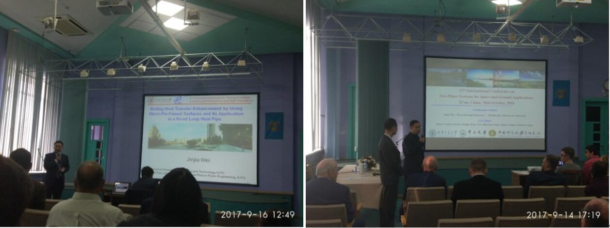 魏进家教授、张永海博士一行参加第十二届天地两相应用系统国际会议(12thInternational conference "Two-Phase Systems for Space and Ground Applications”),该会议是由欧洲空间局(ESA)旗下每年召开一次的国际性学术交流会议。魏进家教授受邀担任分会主席和参加了欧空局专题小组会议,代表中方汇报了沸腾强化换热研究进展。魏进家教授还受邀在会后举办的第二届相界面与传热国际青年科学家论坛做了题为“Boiling Heat Transfer Enhancement by Using Micro-pin-finned Surfaces and Its Application in a Novel Loop Heat Pipe”的大会报告。会议期间,魏进家教授申报并获批于2018年10月中旬在 微密猫