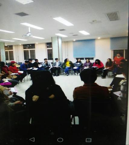 接下来,闫老师引导同学们画出自己的生命线,并进行了一系列心理小测试。首先,预测自己的死亡年龄,并在自己的生命线上标示出来。其次,选出截止目前为止对自己影响最大的三件好事和三大挫折,对他们进行排序,并寻找最好的事和最大的挫折之间的相同点,发现这些好事和挫折对自己和对其他人的影响。再次,说出自己在未来最想做的三件事。最后,闫老师让每个人为自己写一句话,并大声的朗读出来。同学们对这些问题认真思考,并给出了自己的答案,闫老师通过询问大家不同的答案背后的深层次原因,让同学们说出了自己内心最真实的感受,从而真正的认识自己。