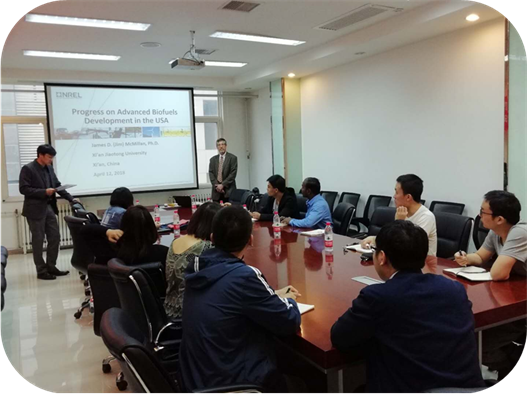 进行学术交流,并对西安交大化工学科建设与发展进行了指导和评价。McMillan教授一直从事纤维素生物炼制和海藻生物炼油等方面的研究及其工业化应用的推广。目前已在秸秆预处理、酶水解、纤维素糖发酵、生物能源及化学品生产等领域累计了25年实践经验。访问期间,McMillan教授做了题为:“Progress on Advanced Biofuels Development in the USA”的报告。McMillan教授的报告主要结合自己在生物燃料上多年研究的经验向我们讲述了美国先进生物燃料发展进展、生物燃料的价值及其生物燃料的转化路径等。作为美国国家可再生能源实验室首席工程师,McMillan教授就自己主要研究方向及相关研究的经历与 微密猫