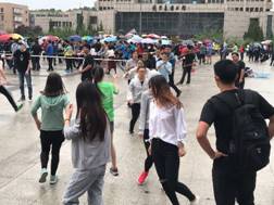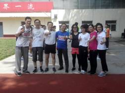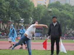 同学便有所斩获:冯静娅同学在女子100米栏中带轻伤坚持参赛,夺得第8名;杨阳、朱佛代同学分别获得男子400米第7名和第8名。时至中午,天气转阴,倏尔降雨,下午的比赛便只能在阴雨密布中进行。田雨和龚翔两位同学在风雨中顽强拼搏,坚持完成了5000米的比赛。沈人杰和严辉英两位老师全程观赛,为他们加油助威。在四大发明广场进行的研究生集体项目中,参与跳大绳比赛的两支队伍也勇于克服了风吹雨打和地面湿滑的困难,顺利完成比赛。