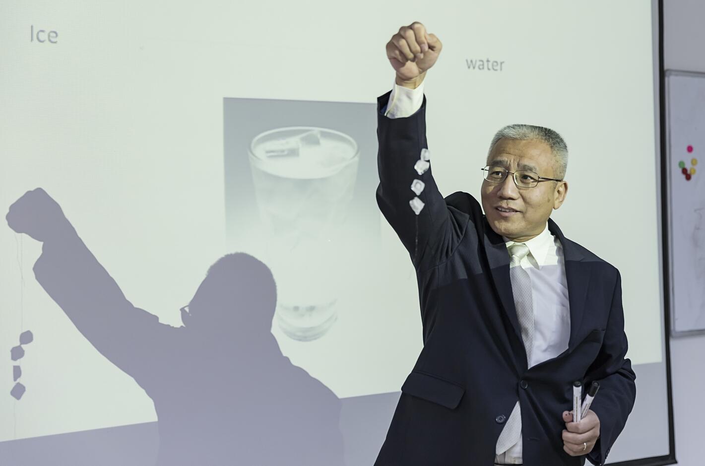 10月29日上午,弭教授以“Dispensational Transfer in Chemical Research and Education(时代转变时期的化工科研与教学)”为题作了一场生动的学术讲座。在讲座中,弭教授首先演示了他在本科教学时激发学生兴趣和启发学生思考的两个教学实验:一个是“掌中薄纸弯曲”实验,另一个是“细线钓冰块”实验,从这两个生动的实验出发,弭教授深入浅出地阐述了化工原理中扩散传质的机理。