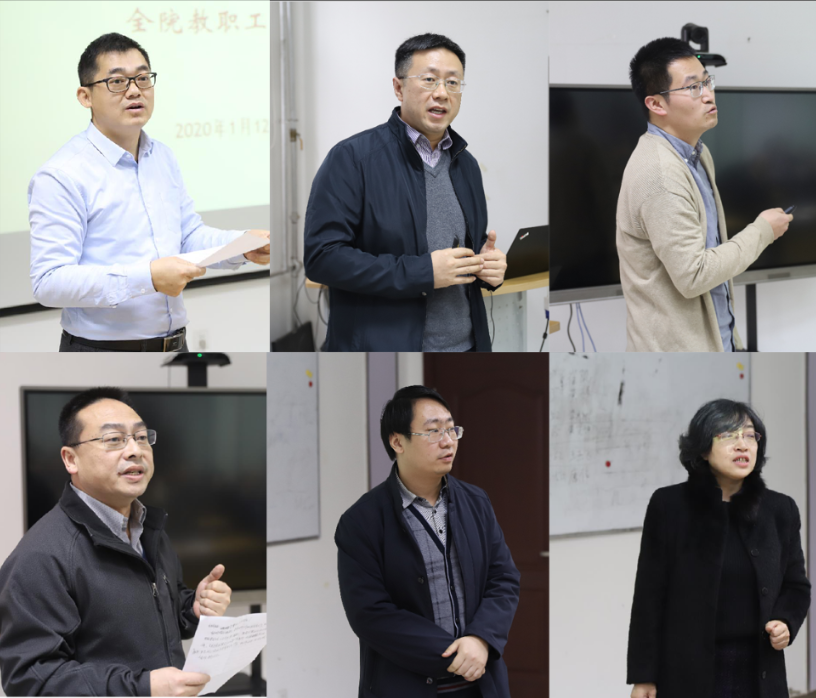 张早校详细传达了张迈曾书记寒假工作会议“奋不顾身,冲锋在前,万众一心加油干”的总结讲话精神,着重强调了张书记对2020年工作的7项具体要求、坚持“五性要求”以及“三个坚持”导向,并结合学院具体工作希望全院教师加强协作、形成合力。院长魏进家详细传达了王树国校长《不忘初心、牢记使命,大学应该回应的四个关切》的工作报告,全面回顾了2020年学校在奋力拼搏、跨越发展的征程中取得的各项成绩,解读了大学应该回应的“四个关切”以及2020年学校在人才培养、科学研究、学科建设、国际合作等方面的几项重点工作。