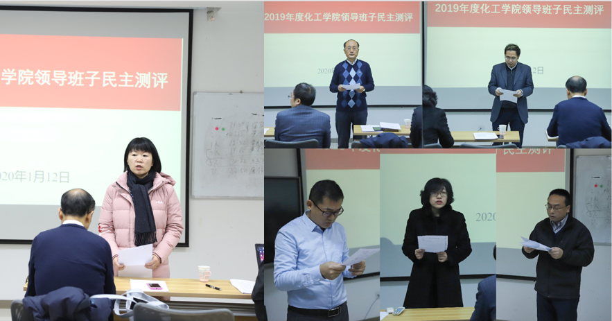 组织部副部长张莹介绍了领导班子和校管干部民主测评的相关要求,希望全体教职工根据述职工作进行客观的评价。分党委书记张早校代表学院领导班子从班子政治思想建设、领导能力、工作实绩、党风廉政建设、作风建设等5个方面作领导班子2019年度工作总结汇报。5位班子成员依次作个人述职。全院教职工提交了领导班子和班子成员的民主评议表。