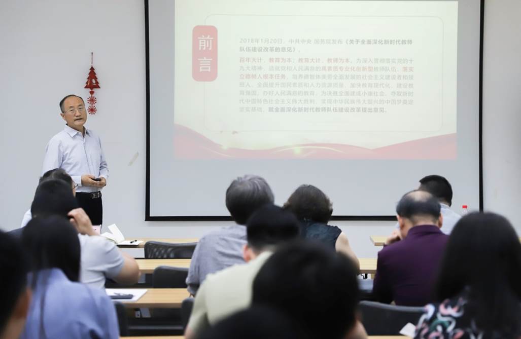 接着围绕师德师风建设,指出了如何在教学和科研活动中落实好师德师风建设工作,既要坚持“大德”,即牢记社会主义办学方向,也要做好“小德”,即遵守职业道德和学术道德,真正担负起学生的引路人,为社会主义事业培养合格的建设者和接班人。