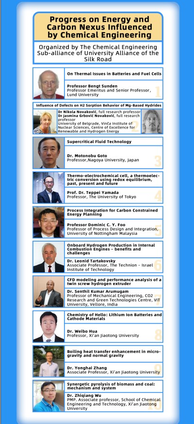 依托丝绸之路大学联盟化工子联盟,组织开办了题为《Progress on Energy and Carbon Nexus Influenced by Chemical Engineering》的暑期课程(共10次课程),邀请了子联盟7位外方专家和3位中方专家线上讲座。课程内容丰富多样,受到了国内外师生的广泛关注。