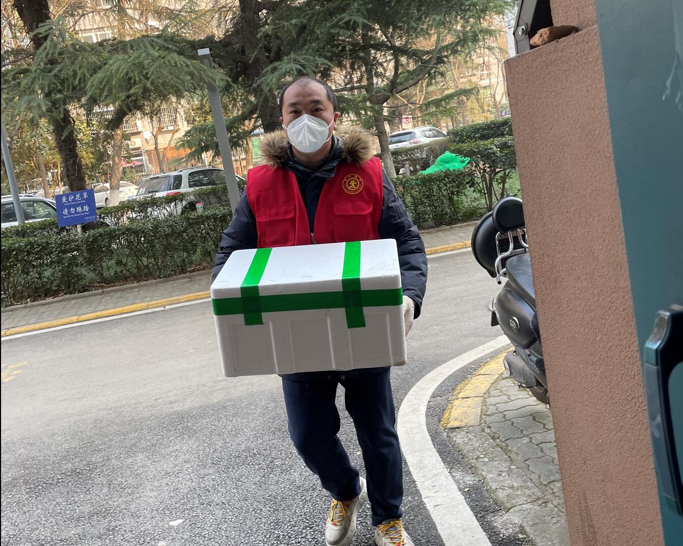 “二村很多楼层都没有电梯,我印象最深的就是蔬菜卸载,分装、联系住户发放,并为独居老人上门送菜,我们都是爬楼梯挨家挨户送菜,真的很辛苦,可是当我看到学校和学院的领导亲临一线,从早到晚,真的非常感动,我觉得咱们上下有这样一股劲,就没有不能克服的困难!”,来自化机教工党支部,学院实验中心主任高秀峰如是说。