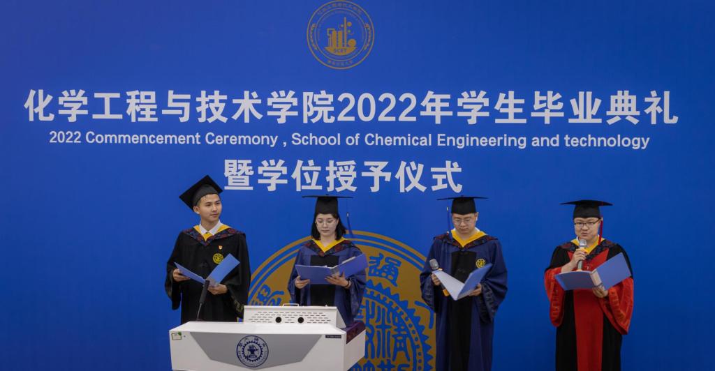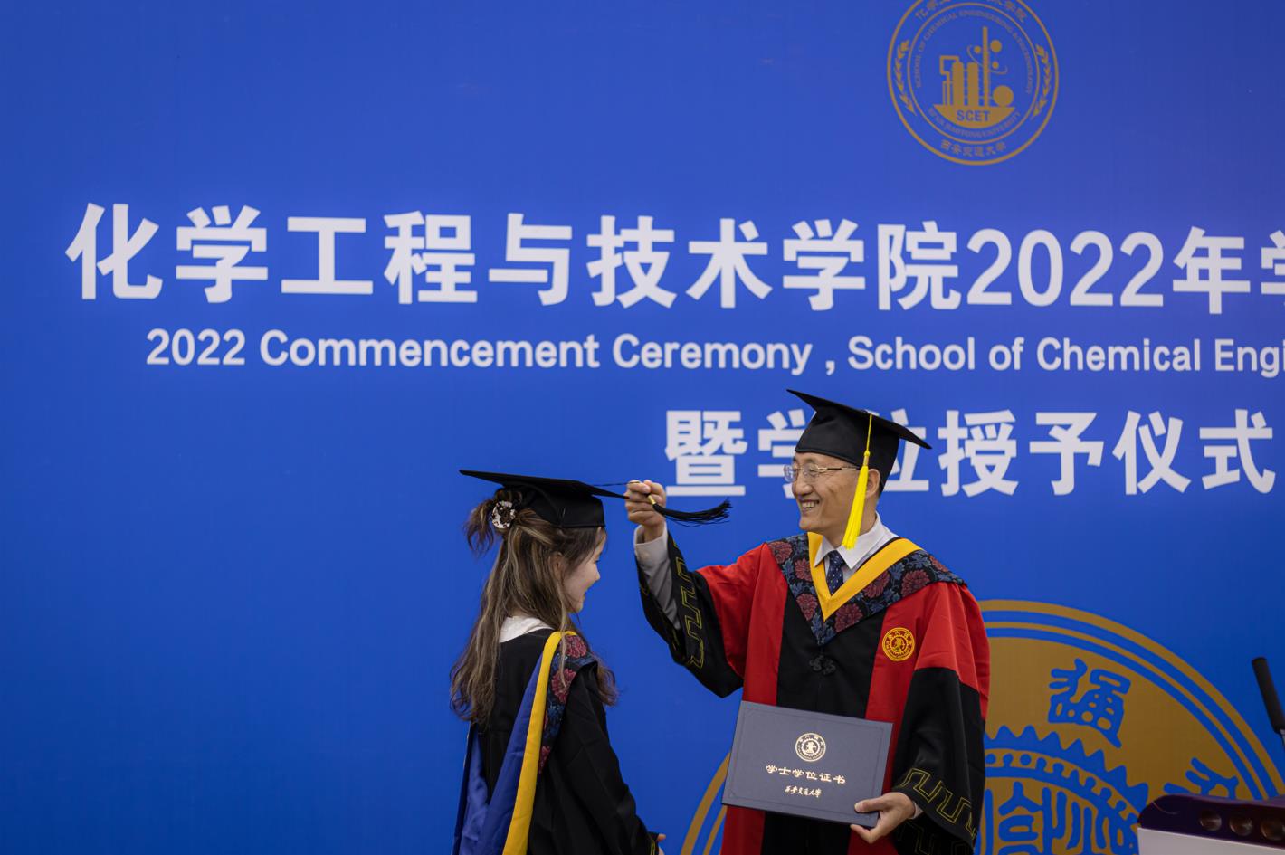 在青春优美的旋律中,魏进家教授、张早校教授为学院2022届博士生、硕士生和本科生颁授学位证书并合影留念。相聚终有时,后会亦有期。新一批化工学子胸怀国之大者,勇担国家使命,已踏上新的征程,到祖国最需要的地方建功立业。
