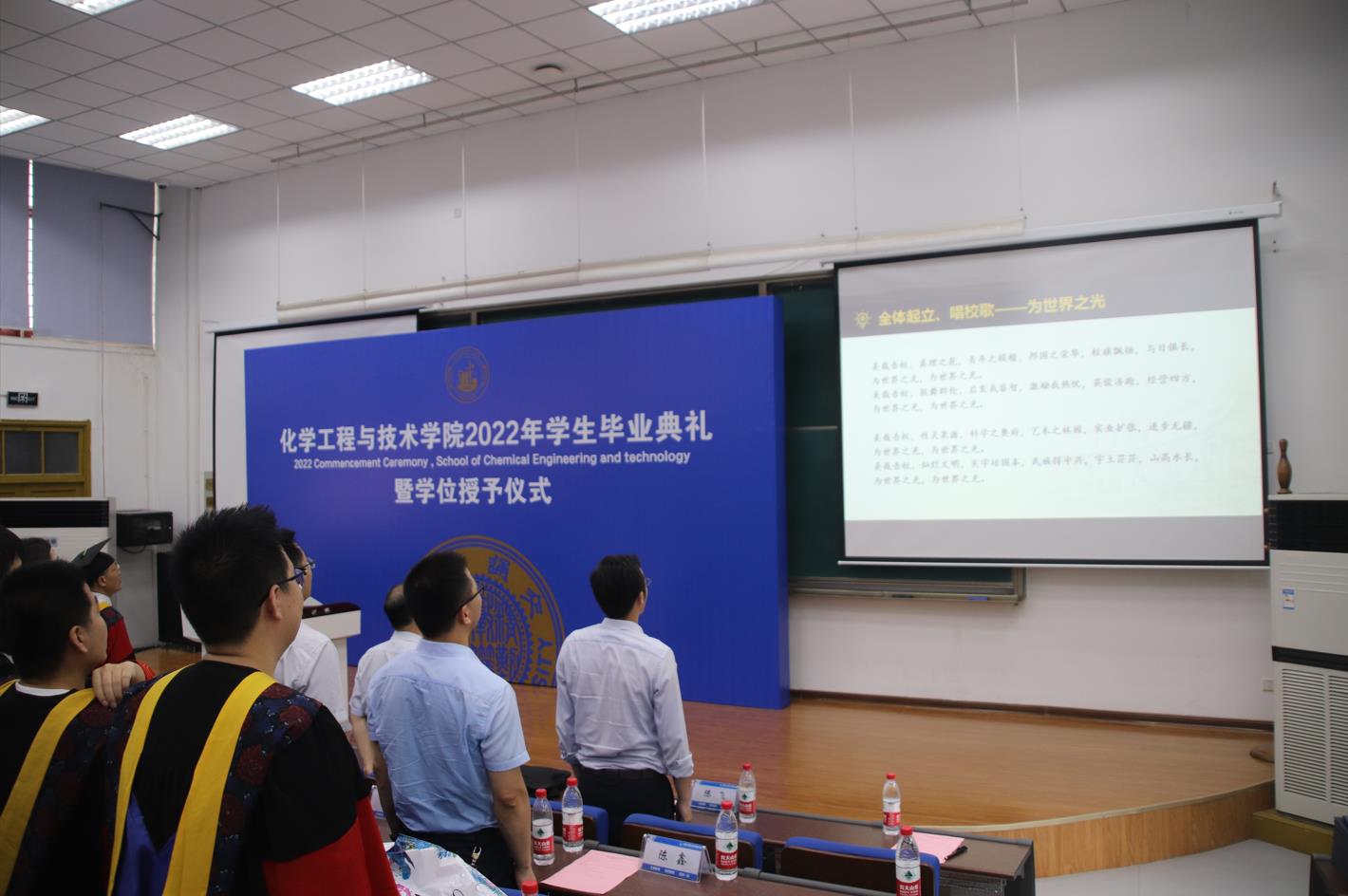 仪式在庄严合唱校歌中开始。伊春海首先通报了学院2022届本科生、硕士生、博士生学位授予情况及就业情况,祝愿毕业生们前程似锦,圆梦未来。