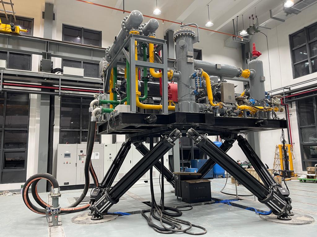 受国家发改委专项资助,为保障“深海一号”的安全运行以及开展压缩机国产化,2021年团队与中海油集团在西安交大共建了国内首套研究浮动平台运动对大功率、高转速压缩机可靠性影响的压缩机振动与故障诊断综合实验平台。综合实验平台测量参数多、功能多、拓展性强,除能进行恶劣海况下压缩机可靠性研究外,还开发了大功率压缩机宽工况闭式实验控制方法及系统,实现压力变化自动调节,可进行压缩机变压力工作特性、流量综合调控技术实验研究,不仅从功能实现上达到了国际先进水平,也为海洋平台压缩机实现国产化提供了有力支撑。