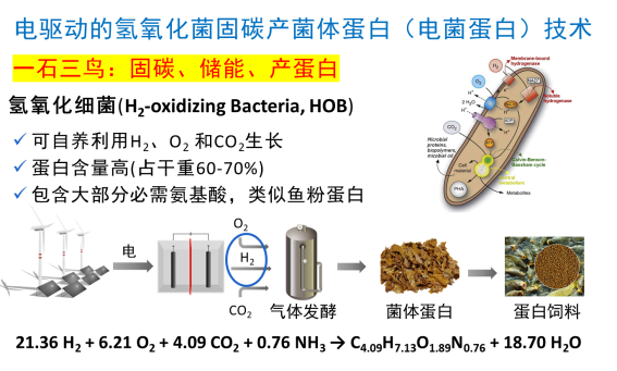 电能驱动的细菌固碳产单细胞蛋白技术(即“电菌蛋白技术”)是一种利用氢氧化菌将电解水产生的H2和O2用于固定CO2合成菌体单细胞蛋白的技术。该技术具有固碳、储能和产蛋白饲料的“一石三鸟”作用,对我国双碳战略和粮食安全具有重要意义。微密猫