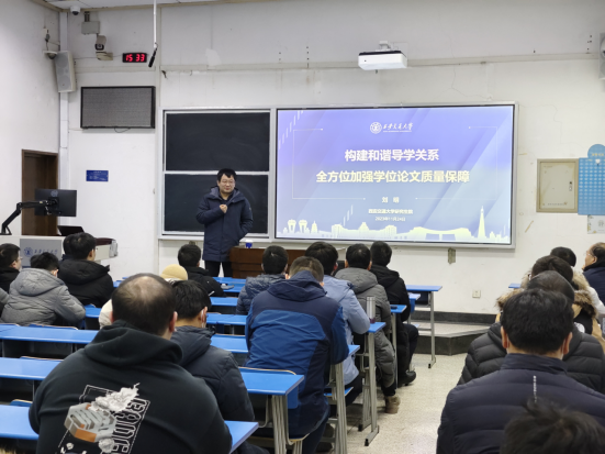 刘明教授做了《构建和谐导学关系全方位加强学位论文质量保障》专题报告,从构建和谐导学关系、学位论文评价机制、学位论文客观评审、学位论文质量保障等四方面,向参会导师详细解读了如何全方位加强学位论文质量保障。他指出导师与学生是学位论文的主体和第一责任人,要进行多维度客观公正的评审,牢牢抓住学位论文开题、中期考核、盲审、评阅、答辩、分会、校会等关键之处,建立评价体系,坚守立德树人的底线,压实答辩委员会和分会校会的职责。质量是学位与研究生教育的生命线,导师要严格把关学位论文研究工作、写作发表、学术水平和学术规范性,进一步提高研究生培养质量。