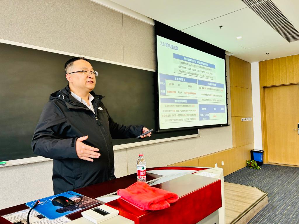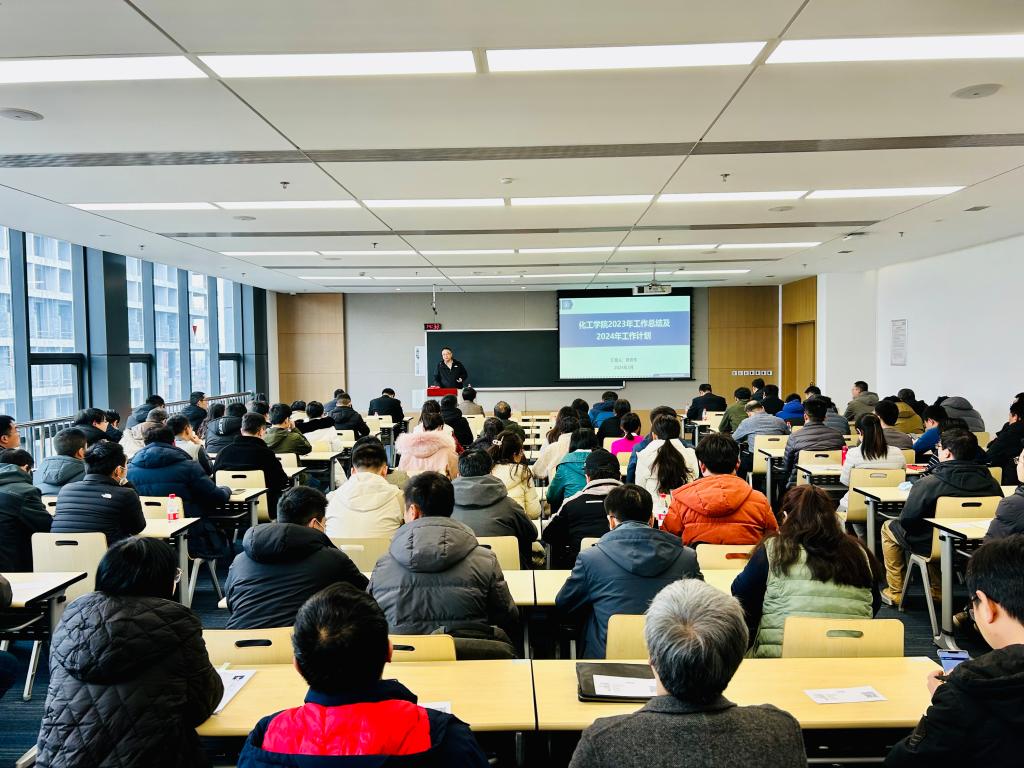 2023年度工作总结及2024年工作计划》报告。他全面总结了学院2023年在队伍建设、人才培养、科学研究、国际合作与交流等方面取得的显著成绩,梳理了学院发展中存在的突出问题,对2024年学院加强师资队伍、科学研究等重点工作进行安排部署。他希望全院教职工凝心聚气,共同参与并积极落实学院教学科研各项任务,在2024年取得更大成绩。