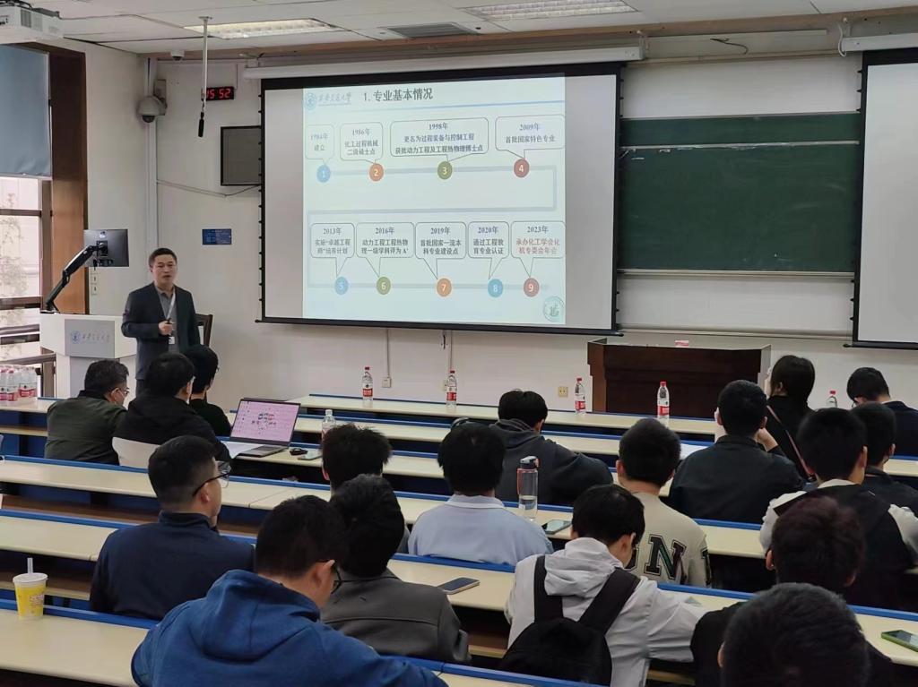 齐宝金主任从历史沿革与专业荣誉、师资队伍及教学平台研究基地、教育基金和培养成果、学科建设与综合改革四个方面介绍了过程装备与控制工程系,并对同学们选择过程装备与控制工程专业表示欢迎。他建议学生要提高站位,紧盯国家重大需求和科技发展前沿,结合自身兴趣、特长来选择专业,做好人生的长远规划。