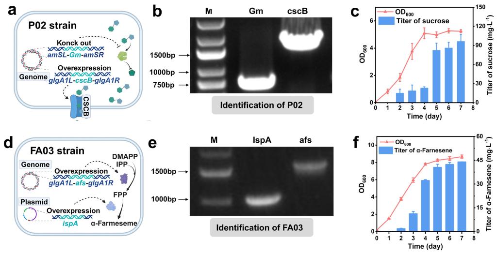 图4 构建嗜甲烷菌细胞工厂生物合成蔗糖和法尼烯