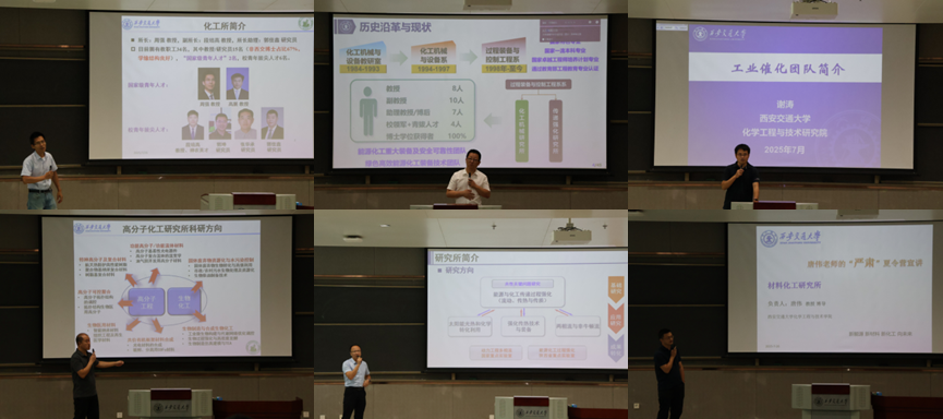 余云松向营员详细介绍了学院的基本情况、学科建设、人才培养及科研平台等内容,帮助营员全面了解学院的发展情况与优势资源。学院6个研究所负责人依次从研究方向、科研成果、导师团队及研究平台等方面对各自研究所进行了详细介绍和宣讲,充分展示了各所的科研实力。部分营员代表也结合自己的背景与兴趣进行了发言,表达了对化工专业的热爱和对未来科研道路的憧憬。