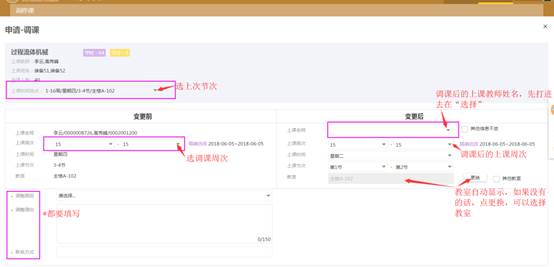 调课(确定补课时间)、停课(不确定补课时间)补课(之前办理过停课的)教师根据情况进行选择。