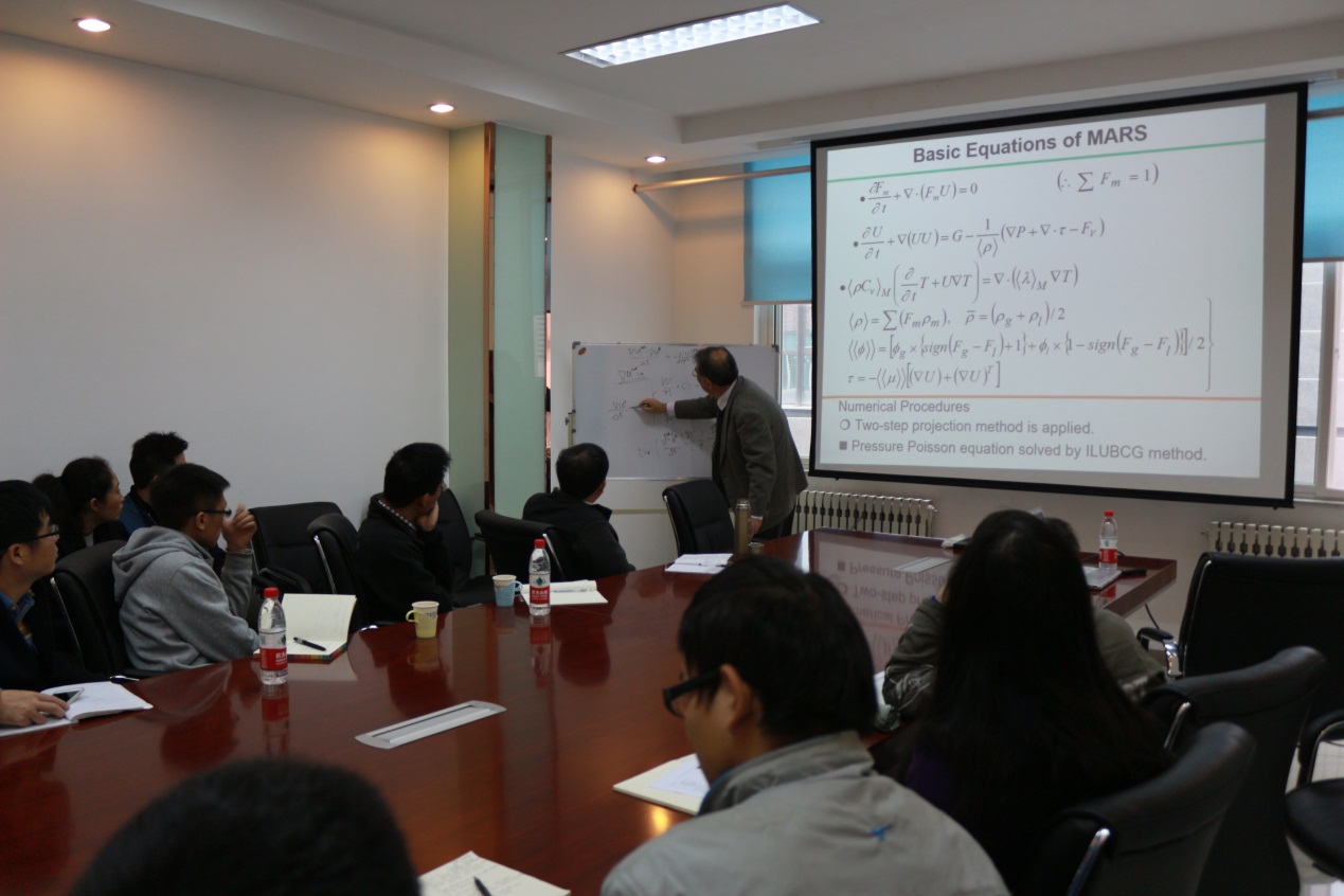 师生进行学术交流。访问期间,Tomoaki Kunugi教授做了两个学术报告,介绍了他课题组关于核反应堆环状流中气液相界面与液滴夹带特性方面的研究以及沸腾现象的多尺度直接数值模拟研究。报告深入浅出,精彩纷呈。同时, 微密猫