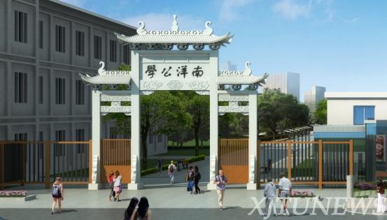 学校即将建成的新西门,则以复建创校校门为蓝本,以“南洋公学”的历史文化为基础,传承西安交大悠久的历史文化。创校纪念校门位于兴庆校区西二楼西南侧,采用黄山石材和徽派石雕艺术,以做旧的施工工艺还原南洋公学老校门建筑风格。校门目前设计尺寸为高11米左右,宽10米左右。