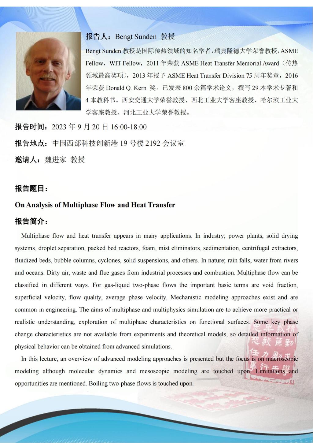 报告人 Bengt Sunden 教授