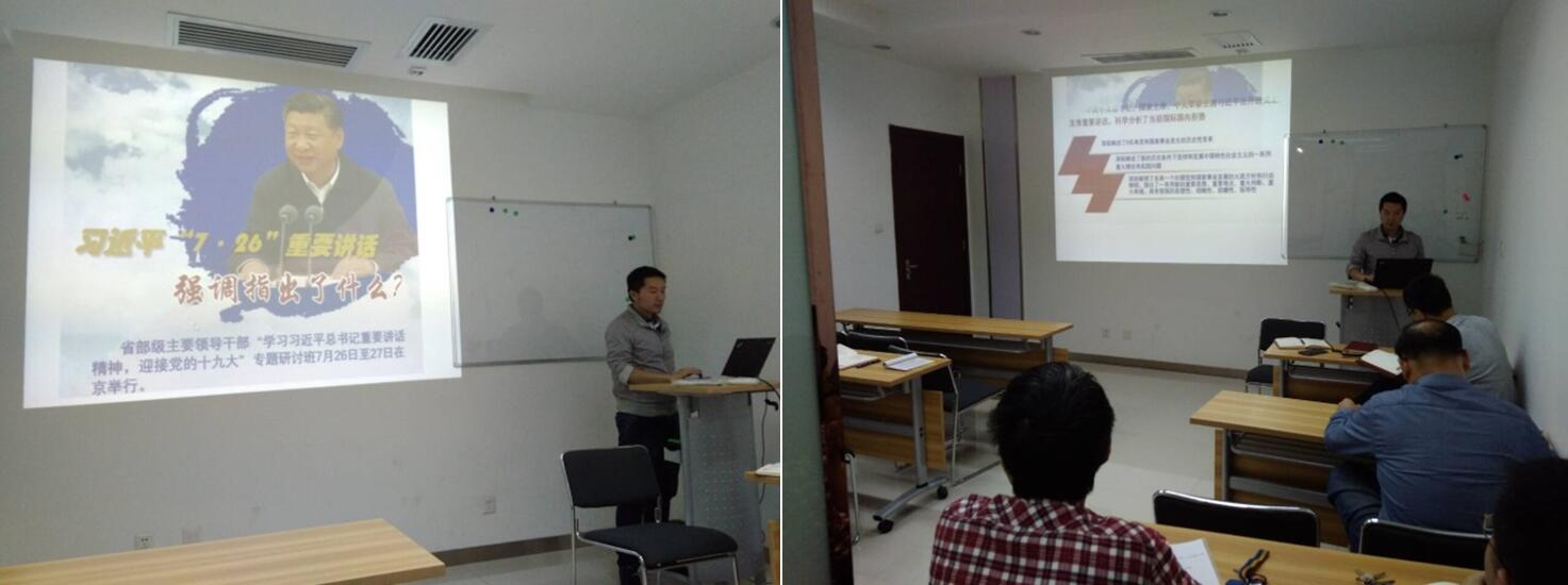 2017年7月26日,在省部级主要领导干部“学习习近平总书记重要讲话精神,迎接党的十九大”专题研讨班上,习近平同志发表了重要讲话。讲话立足我国发展新的历史起点和中国特色社会主义新的发展阶段,围绕决胜全面建成小康社会、夺取中国特色社会主义伟大胜利、实现中华民族伟大复兴的中国梦,提出了一系列重要思想、重要观点、重大判断、重大举措,具有重大政治意义、理论意义、实践意义。在本次化机系支部民主生活会期间,支部委员通过播放新闻联播视频、精心制作PPT对会议精神进行讲解等方式详细阐述了习近平总书记“7.26”重要讲话精神,让在座党员以更为直接的方式学习讲话精神。