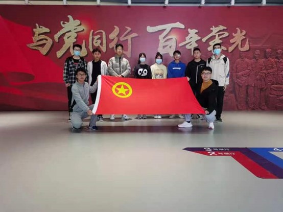 S2154支部全体在博物馆门前集合完毕,随着鲜红的团旗徐徐展开,伴着主持人的介绍,同学们走进了这外形上别具一格的展馆。