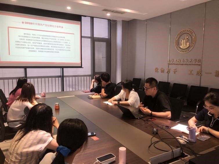 行政党支部开展党纪学习教育专题学习,支部全体党员参加学习,支部书记蔡元汉作解读《中国共产党纪律处分条例》的主题党课。