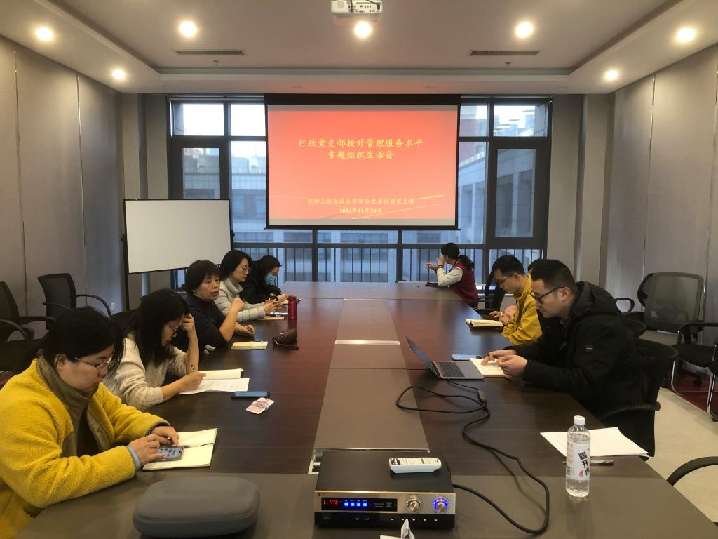 党委行政党支部召开“提升管理服务水平”专题组织生活会扩大会议,传达学习贯彻党的二十届三中全会精神,总结四十周年院庆、2024中国化工学会科技创新大会办会工作,学校党委巡视工作以及日常管理服务工作。学院党委书记苗晋英出席会议。院办全体人员参会。会议由办公室主任、行政支部书记蔡元汉主持。