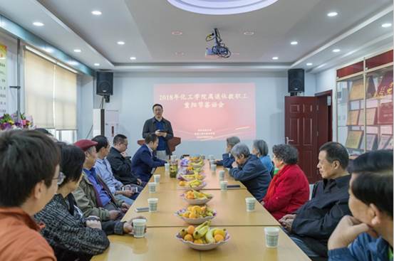 2018年10月17日下午,暨阴历九月九日重阳节当天,微密猫 工会组织召开了学院退休教职工重阳节茶话会。“九日黄花酒,登高会昔闻”,化工、化机和高分子三个专业方向的退休教职工,他们曾经一起为学院建设发展贡献了力量,今在交大生活区离退休处欢聚一堂。