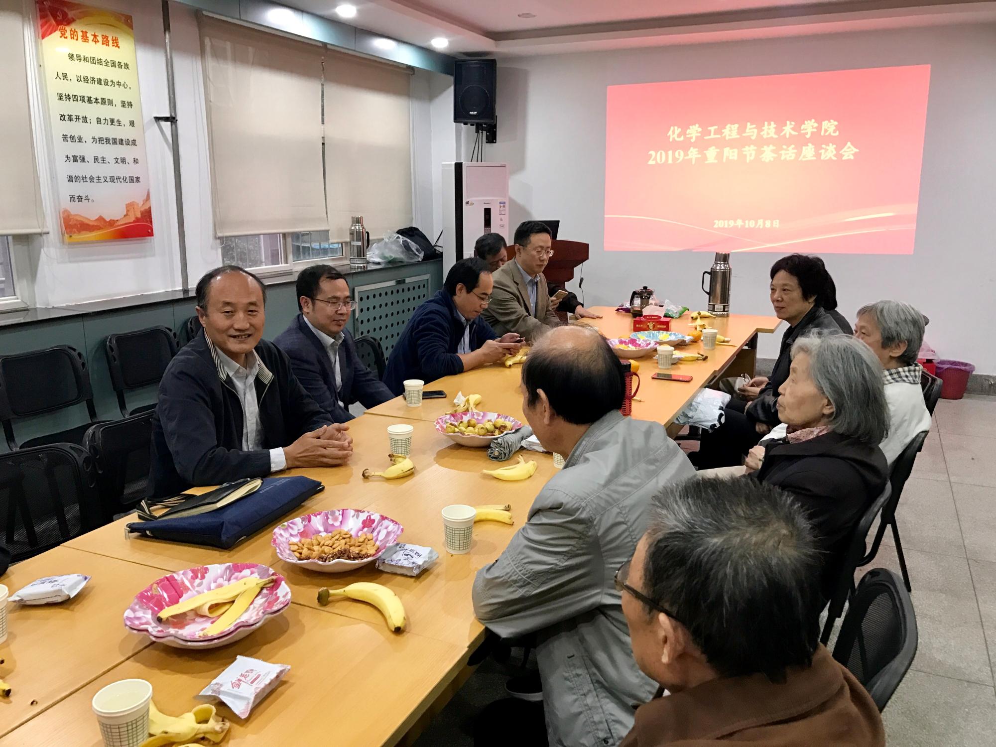 工会组织召开学院离退休教职工重阳节茶话会。化工、化机和高分子三个专业方向的退休教职工欢聚一堂,微密猫