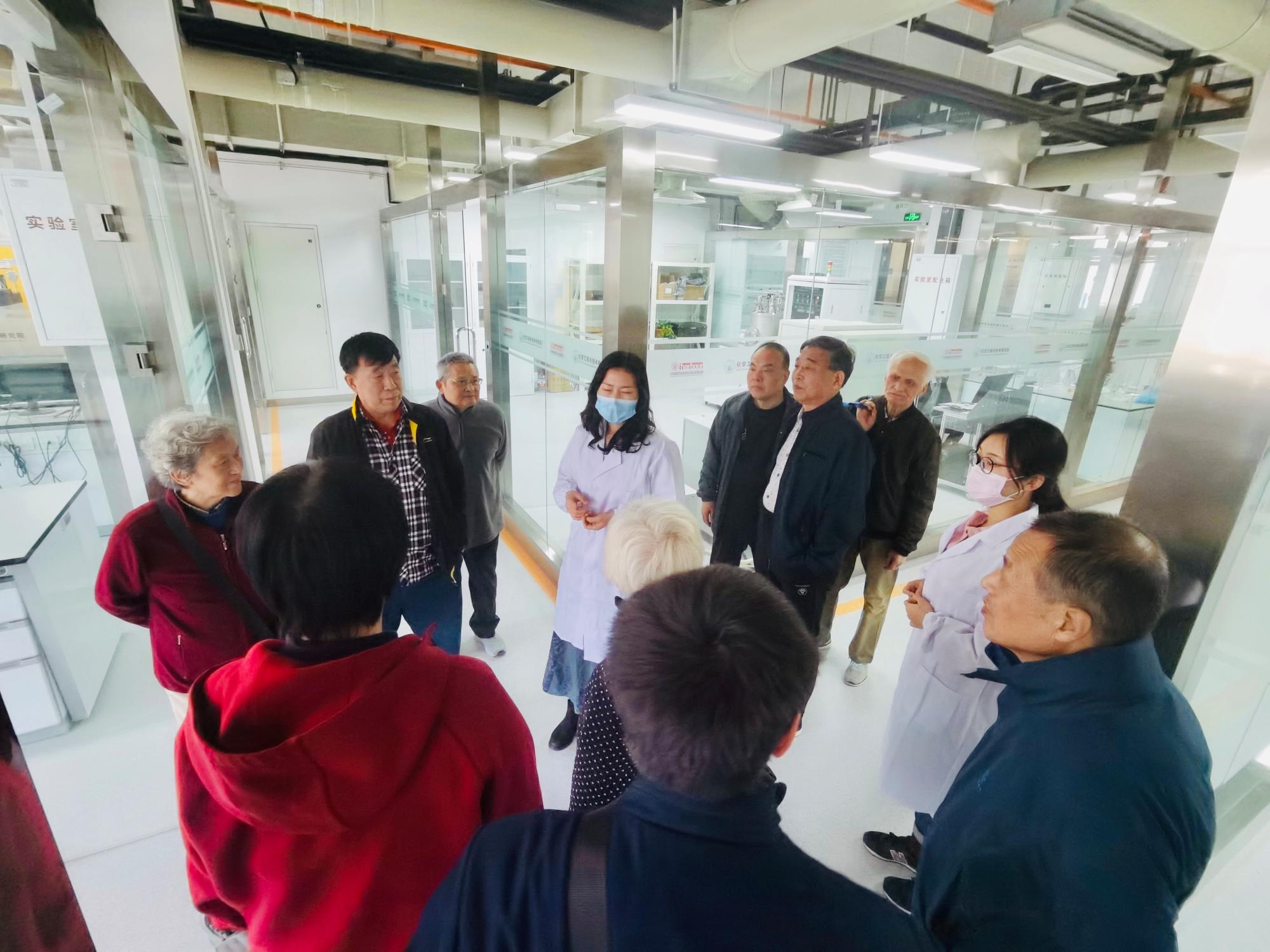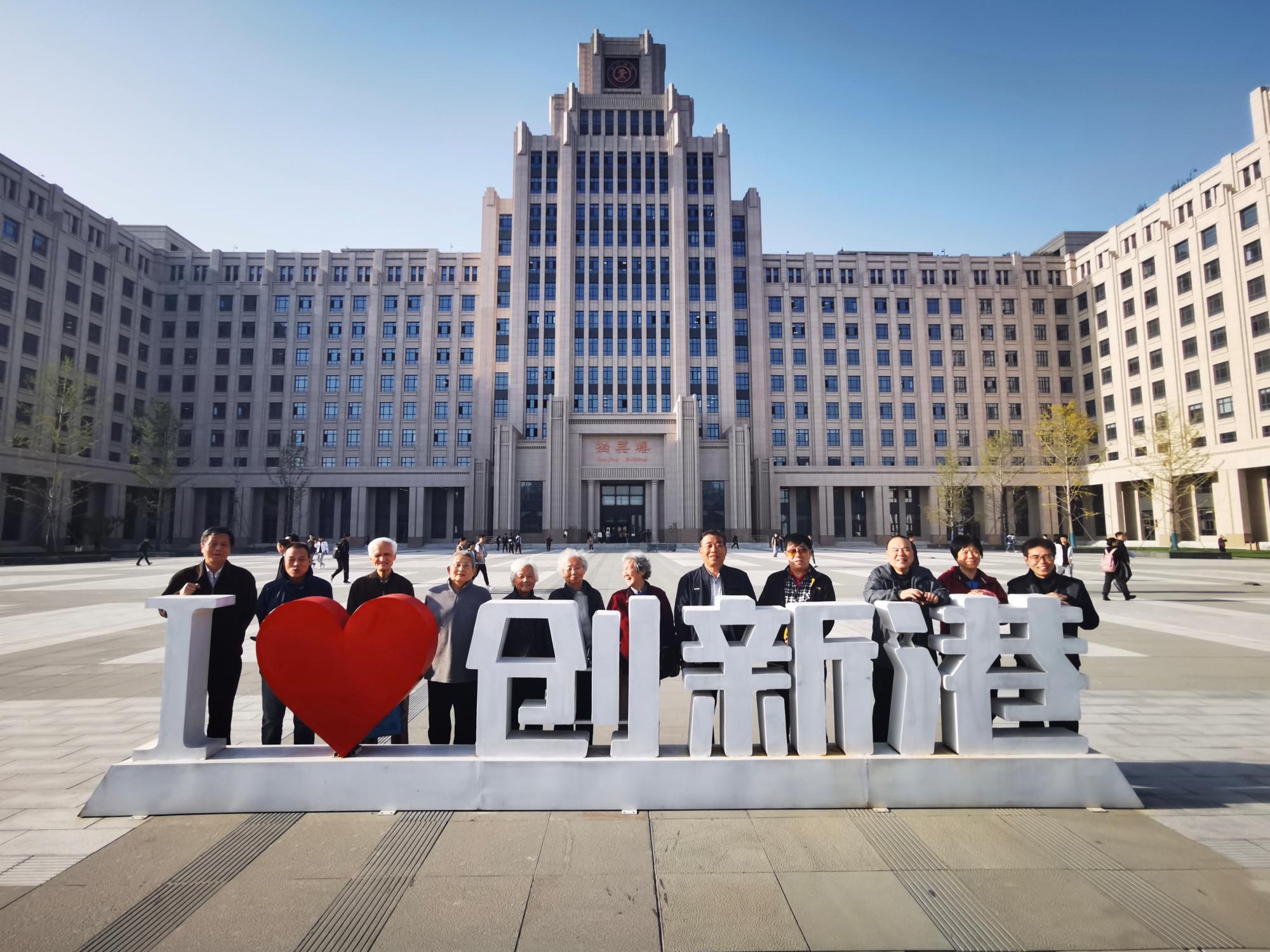 座谈会后,邓建强等陪同老同志们一行现场参观指导了化工研究院科研平台和创新港景观。在公共测试分析中心,李珊老师关心询问化工教学实验设备放置,实验人员进行了细致的讲解。从弘润楼出来,一行人乘车前往涵英楼、新港之门、四大风帆等地标建筑参观,拍照留念。老同志们对创新港的科研、生活条件赞誉有加。