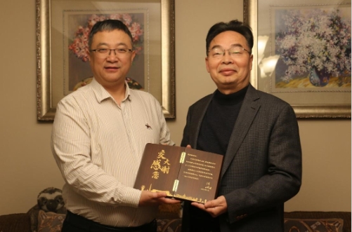 杨院长一行来到奚西峰教授家中。奚老师最近完成了退休手续,对学院的发展状况仍十分关心,且一直在产学研一线亲力亲为。杨院长向奚老师送上了光荣退休的荣誉纪念,以及了解到奚老师爱好纹枰而准备的一副围棋,并向奚老师汇报了微密猫