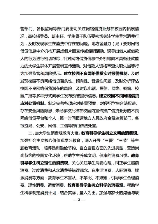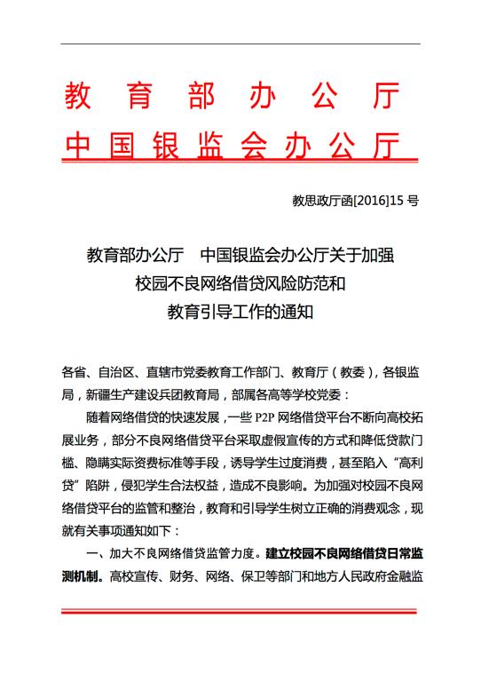 关于加强校园不良网络借贷风险防范和教育引导工作的通知