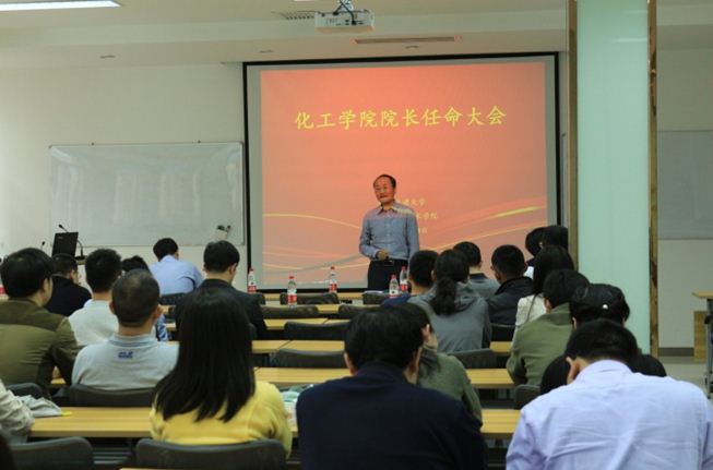 工作的肯定和鼓励,也非常感谢全体教职工对他工作的支持,并做了简短地就职表态:尽心尽职、勇于担当,牢记服务意识,在学院营造团结友好,奋发向上的氛围;加强自身学习,提高管理水平,树立创新型思维,做好学院的顶层设计;廉洁自律,清白做人,干净做事。