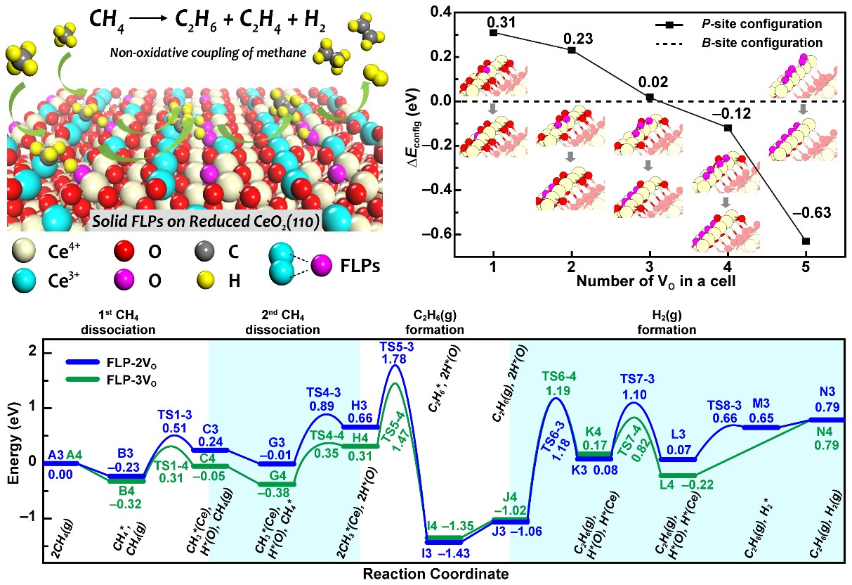 的常春然副教授课题组提出了在CeO2表面设计FLPs的策略,并将其应用于氢气活化和炔烃加氢反应过程,前期研究工作已发表在国际著名期刊Nat. Commun.(2017, 8, 15266, IF: 12.353)和ACS Catal.(2018, 8, 546−554, IF: 11.384)上。近日,该课题组通过理论计算,进一步提出动态FLP的概念,发现在一定的反应温度(> 700 K)和反应气氛下,表面FLPs可以动态形成,揭示了表面FLPs在真实催化过程中普遍存在的现象,并将其首次应用于甲烷无氧偶联制乙烷、乙烯和氢气重要反应过程。该研究成果近期以“Dynamic Frustrated Lewis Pairs on Ceria for Direct Nonoxidative Coupling of Methane”为题发表在国际权威催化期刊(ACS Catalysis,2019,9,5523-5536)上,影响因子为11.384。 微密猫