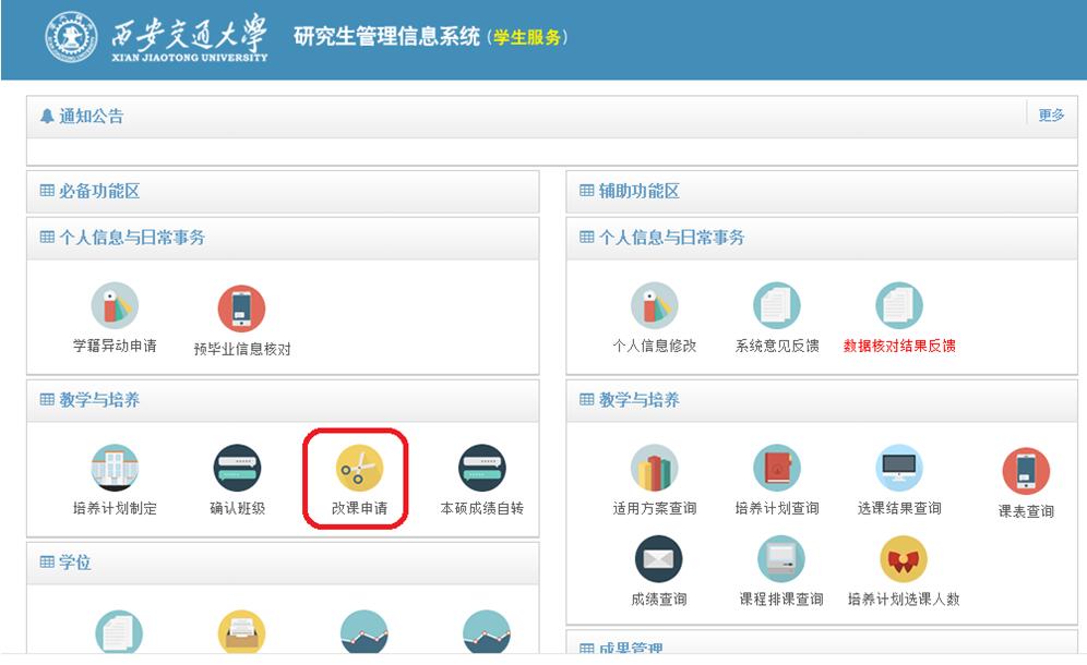特别提示:新系统首次上线使用,如有不便之处,请各位同学及时与研究生教务老师沟通,学院会及时向学校反馈,积极为大家解决系统问题。