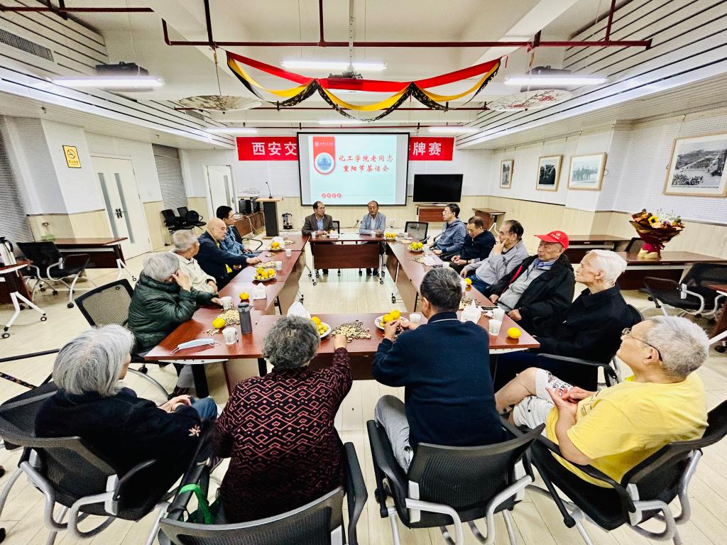 在交大二村教工之家组织召开离退休老同志茶话会。十余位老同志畅谈学院发展,共庆重阳佳节。分党委书记张早校、院长魏进家、副院长伊春海、化机系主任杨福胜、院办主任蔡元汉、教学实验中心侯雄坡出席茶话会,学院工会主席邓建强主持茶话会。